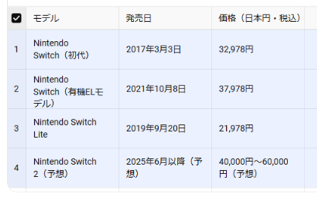 現行Switchの価格を基準に考えると、Switch 2は有機ELモデル(37,978円)より高くなることが予想されます。